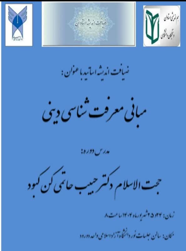به همت دفتر هم اندیشی اساتید دانشگاه آزاد اسلامی واحد دورود و با همکاری معاونت فرهنگی، دوره ضیافت اندیشه اساتید با عنوان «مبانی معرفت شناسی دینی» در تاریخ ۲۴ و ۲۵ شهریور ماه ۱۴۰۴ به مدت ۲ روز (۱۶ ساعت) باحضور جناب حجت الاسلام والمسلمین حاج آقا سعید احمدی مسئول نهاد نمایندگی مقام معظم رهبری در دانشگاه آزاد اسلامی استان لرستان و با حضور استاد ارجمند جناب حجتالاسلام والمسلمین دکتر حبیب حاتمی کن کبود و با مشارکت فعال اعضای هیات علمی دانشگاه در سالن جلسات نور دانشگاه آزاد اسلامی واحد دورود برگزار گردید