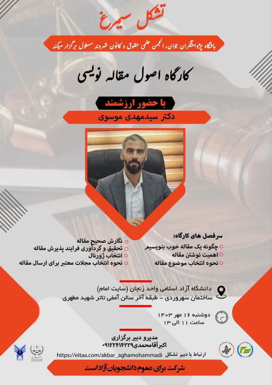 برگزاری کارگاه اصول مقاله نویسی با حضور ارزشمندآقای دکتر سیدمهدی موسوی توسط تشکل سیمرغ برگزار گردید.